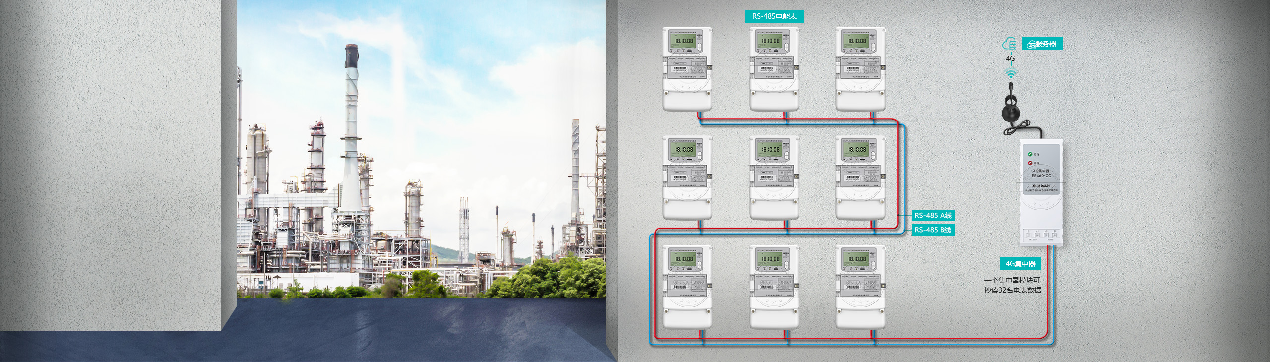 一個(gè)內(nèi)置抄表模塊可抄讀256臺(tái)電表。